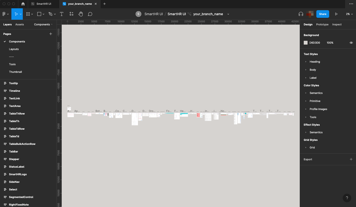 FigmaのSmartHR UI(ライブラリ)は組織全体で利用しているライブラリのため、意図しない更新から保護するために編集権限を制限し「ブランチ機能」を使って運用しています。