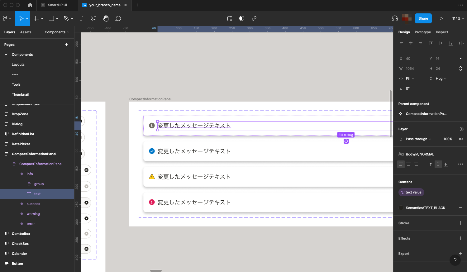 ブランチ内で変更したいコンポーネントやトークンの追加・編集・削除などを行ないます。